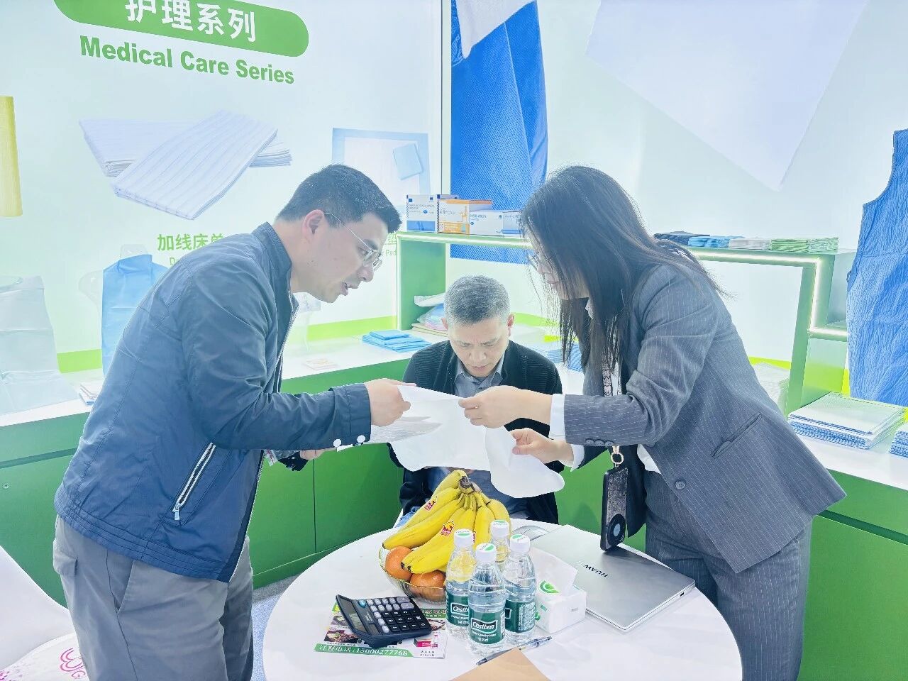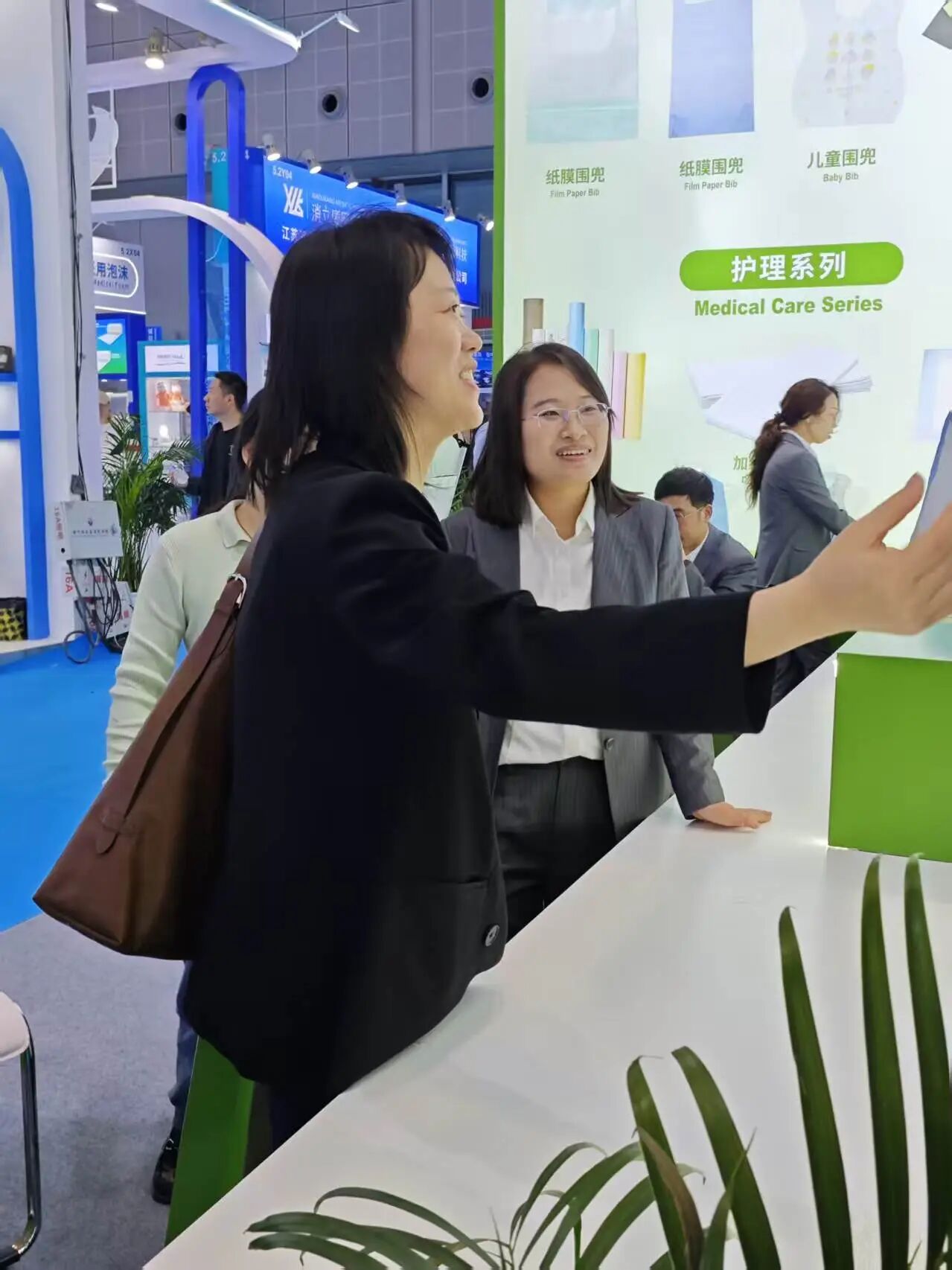 At this exhibition, Terui Jie Holdings Group showcased multiple core products, demonstrating its full industry chain manufacturing strength in the field of sanitary materials. The core product "washed paper" has demonstrated strong innovative substitution advantages in the fields of medical/industrial wiping and environmentally friendly packaging due to its excellent performance; At the same time, the group simultaneously exhibited a series of products such as disposable children's/adult bibs and disposable inspection paper rolls (bed sheet rolls). These products have won widespread favor from on-site customers due to their excellent quality, distinctive features, and stable supply capacity.