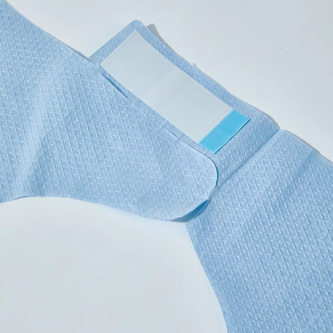 Construção composta de papel e filme: A estrutura dos babadores dentais de papel e filme oferece uma camada macia e absorvente aderida a um filme impermeável, proporcionando a proteção esperada de babadores dentais descartáveis para clínicas.