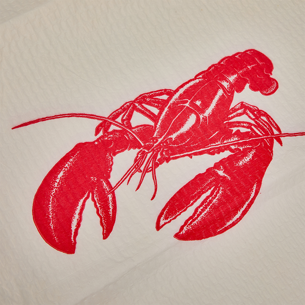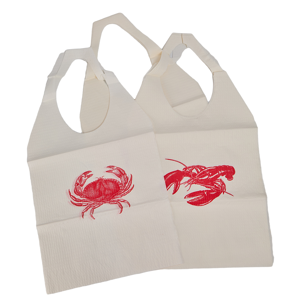 Impressão: opções de impressão de alta qualidade de 1 a 6 cores do nosso fabricante de aventais com impressão de 1 a 6 cores para produzir aventais de papel com estampas vibrantes de lagosta e caranguejo.