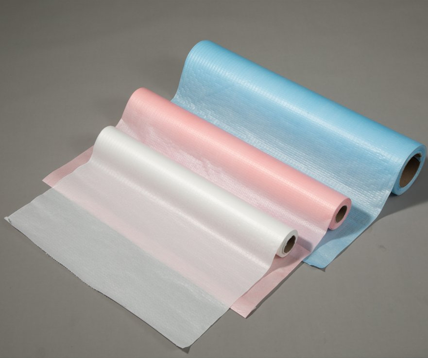 Rolo de filme de papel laminado, lençol de exame biodegradável, rolo de filme de papel para almofada de maca/mesa.