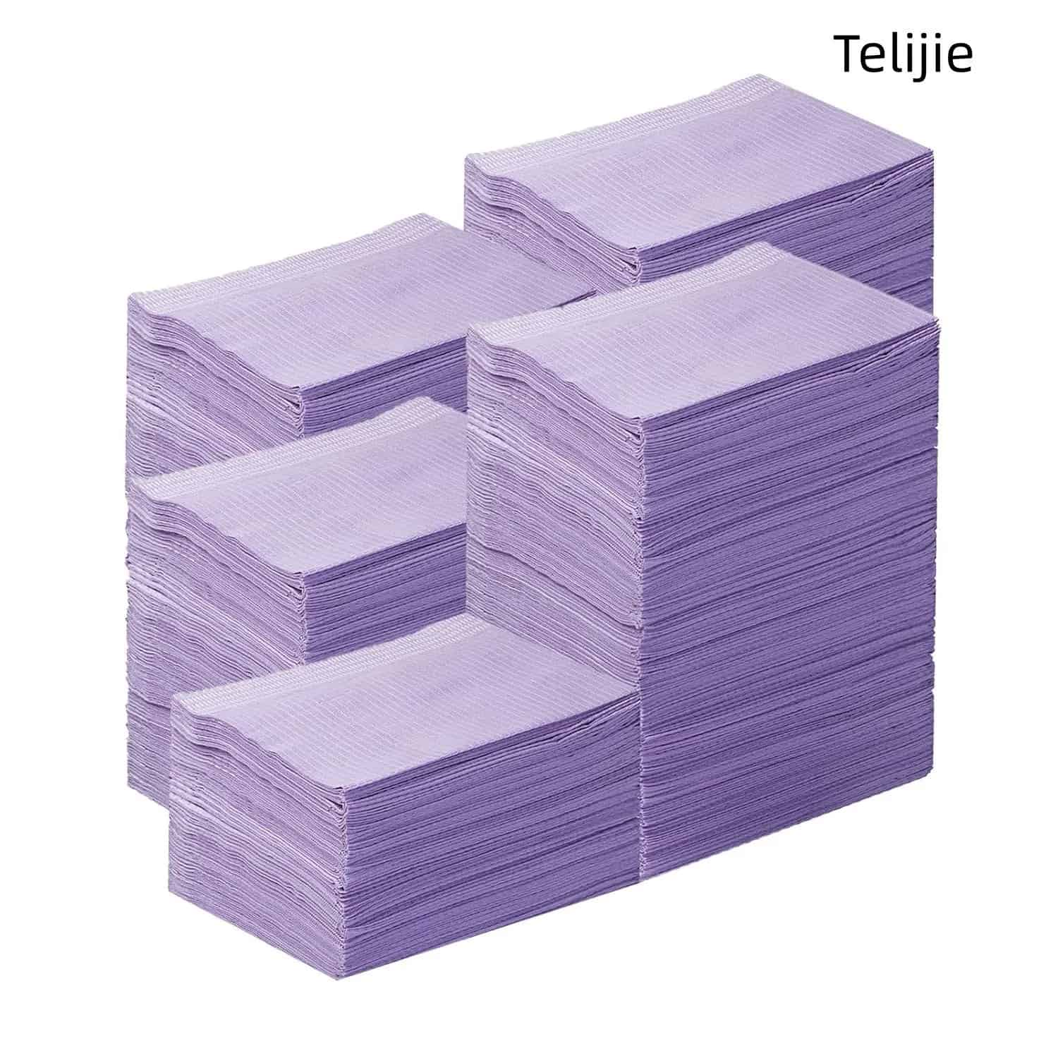 Opções de cores disponíveis: Babadores dentais de tecido duplo oferecidos nas cores rosa, azul, preto e roxo para combinar com diferentes ambientes.