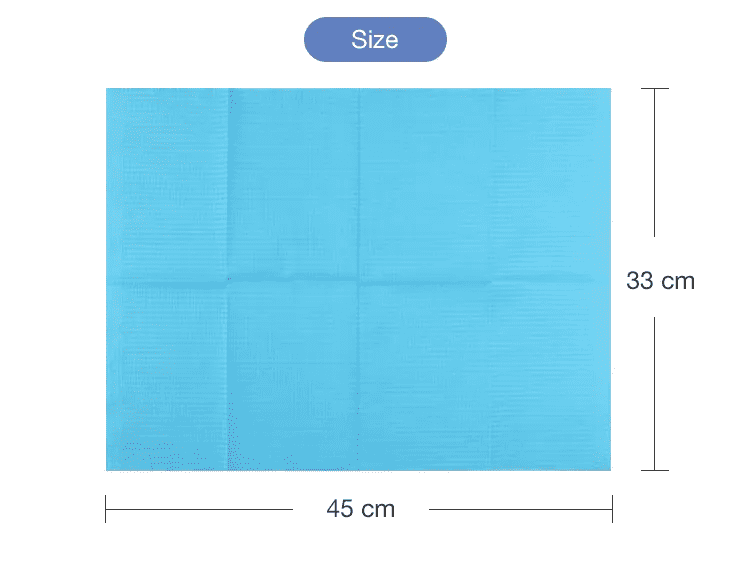 A: O tamanho é 45×66cm, o que é grande o suficiente para fornecer ampla cobertura tanto para pacientes adultos quanto para crianças durante o tratamento odontológico, protegendo suas roupas e a área ao redor.