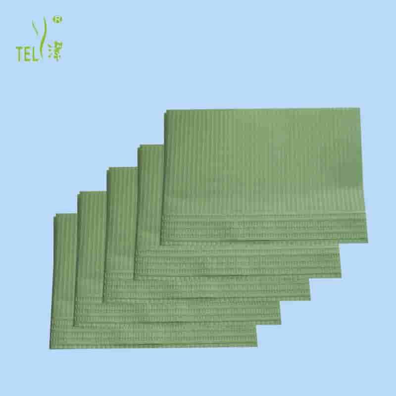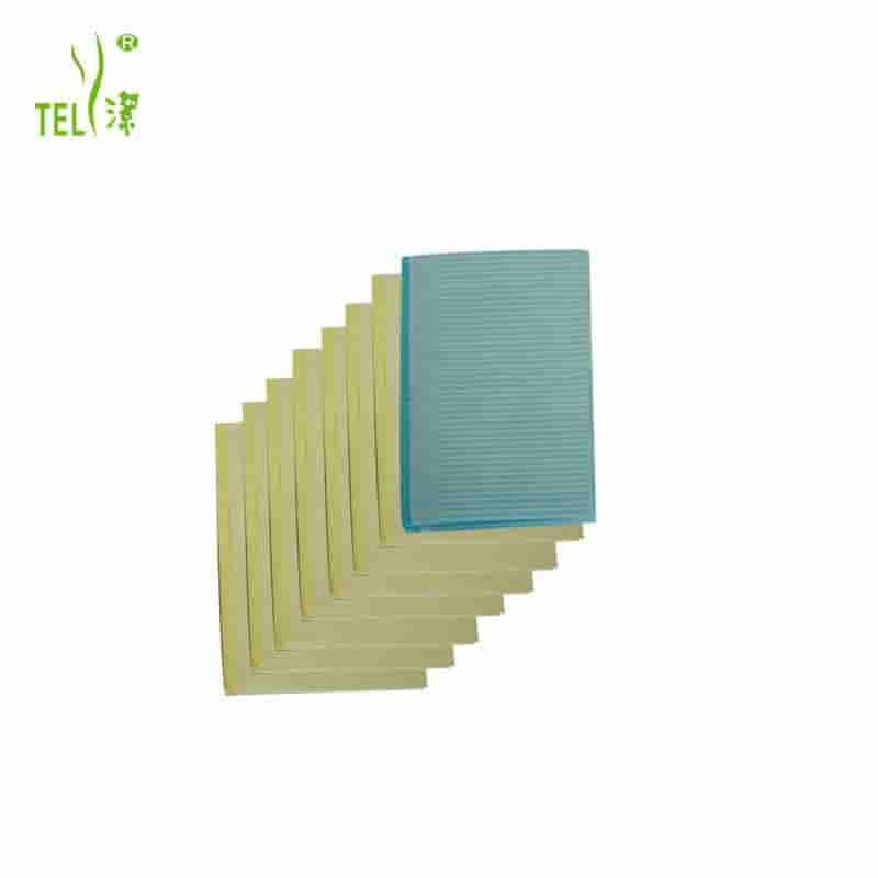 Almofada dental Telijie 45×66cm, 2 camadas (1 de papel + 1 de filme PE), dispositivo médico Classe I com certificação CE, ampla cobertura para tratamento odontológico.