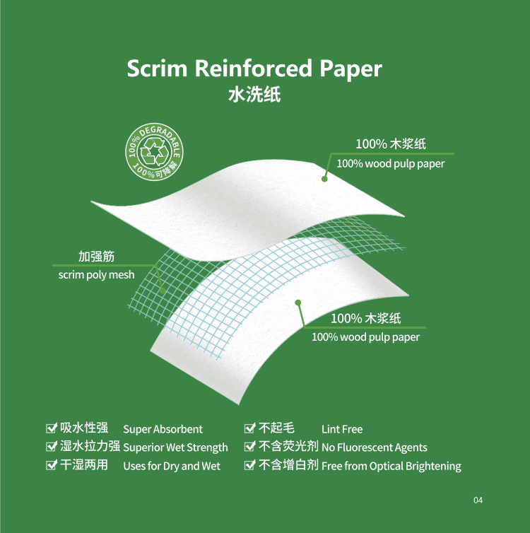Design de 3 camadas e 55g: Estrutura de papel de 3 camadas com gramatura de 55g, leve, porém com espessura suficiente, não perfura facilmente ao ser usada para embrulhar ou limpar, equilibrando portabilidade e praticidade.