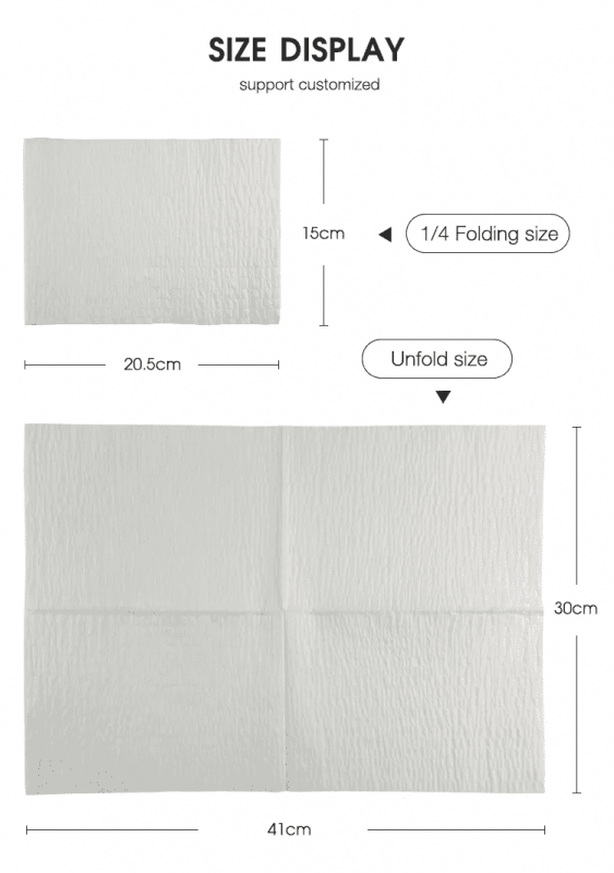 Aplicação em múltiplos cenários: Tamanho fixo de 30cm*40cm, fácil de cortar e usar, amplamente aplicável a materiais auxiliares médicos, limpeza doméstica e de cozinha, embalagem de alimentos, absorção de óleo e outros cenários, prático e versátil.